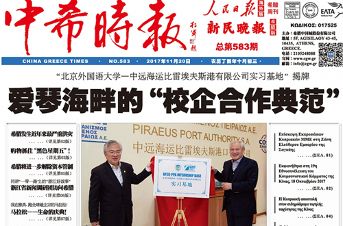 希腊当地中文报纸《中希时报》头版头条对实习基地的建立进行了详细的报道。报道链接: