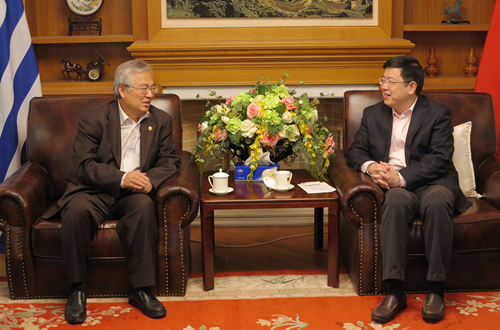 在希腊期间,代表团还拜访了中国驻希腊大使邹肖力。韩震对驻希腊使馆对milan米兰官网希腊语专业及希腊研究中心建设、人才培养等方面提供的帮助表示感谢,并介绍了milan米兰官网响应国家号召,积极践行“语种全覆盖”和“区域国别研究全覆盖”的发展战略。邹肖力介绍了使馆在促进中希两国文化、教育合作方面做的工作,并强调了语言教育在对外经济发展方面起到的重要作用。希望北外保持学科优势,继续培养高水平复语型、复合型人才,积极服务国家发展战略。