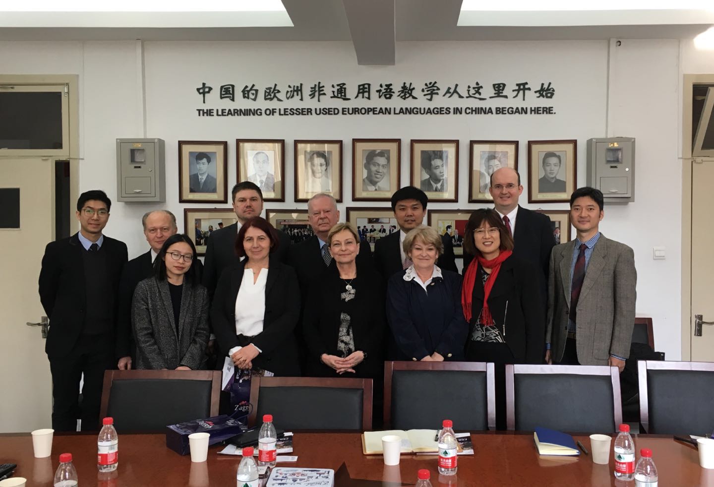 赵刚院长向代表团成员表示欢迎,并向大家介绍了北外和milan米兰体育官网在教学、科研等方面的总体发展情况。代表团团长贝尔曼内茨院士对北外和milan米兰体育官网所取得的成绩表示高度赞赏,并且希望在机构交往、人员交流、图书交流、信息交流、教学科研等方面推进合作,并希望为北外克罗地亚语专业的建设提供支持和帮助。