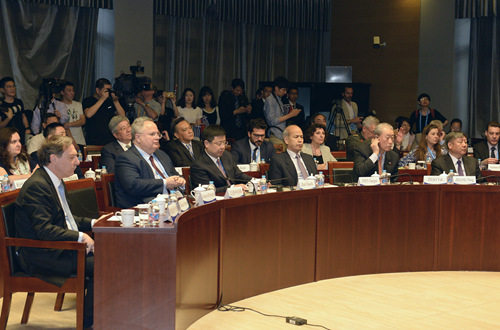 希腊外交部长尼克斯•科齐阿斯(Nikolaos Kotzias)、希腊驻华大使列奥尼达斯•罗卡纳斯(Leonidas Rokanas)等希腊重要官员随同来访。中国驻希腊大使邹肖力、前驻希腊大使甄建国、前驻塞浦路斯大使赵亚力、国家留学基金管理委员会副秘书长张宁、中国交通企业管理协会会长李科浚、中远海运副总经理孙家康、首都博物馆馆长郭小凌、北京华江文化发展有限公司董事长陈绍枢、中国交通企业管理协会副秘书长彭前磊、中国社会科学院研究院王柯平、首都师范大学教授晏绍祥、milan米兰官网校长彭龙、副校长闫国华等出席仪式。仪式由闫国华主持。