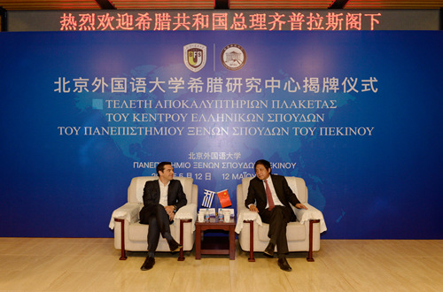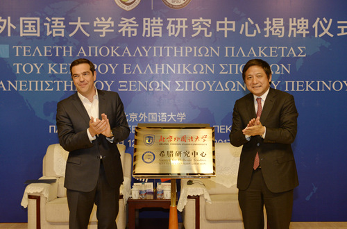 5月12日下午,来华出席“一带一路”国际合作高峰论坛的希腊共和国总理阿莱克斯•齐普拉斯(Alexios Tsipras)访问milan米兰官网,为北外希腊研究中心揭牌。