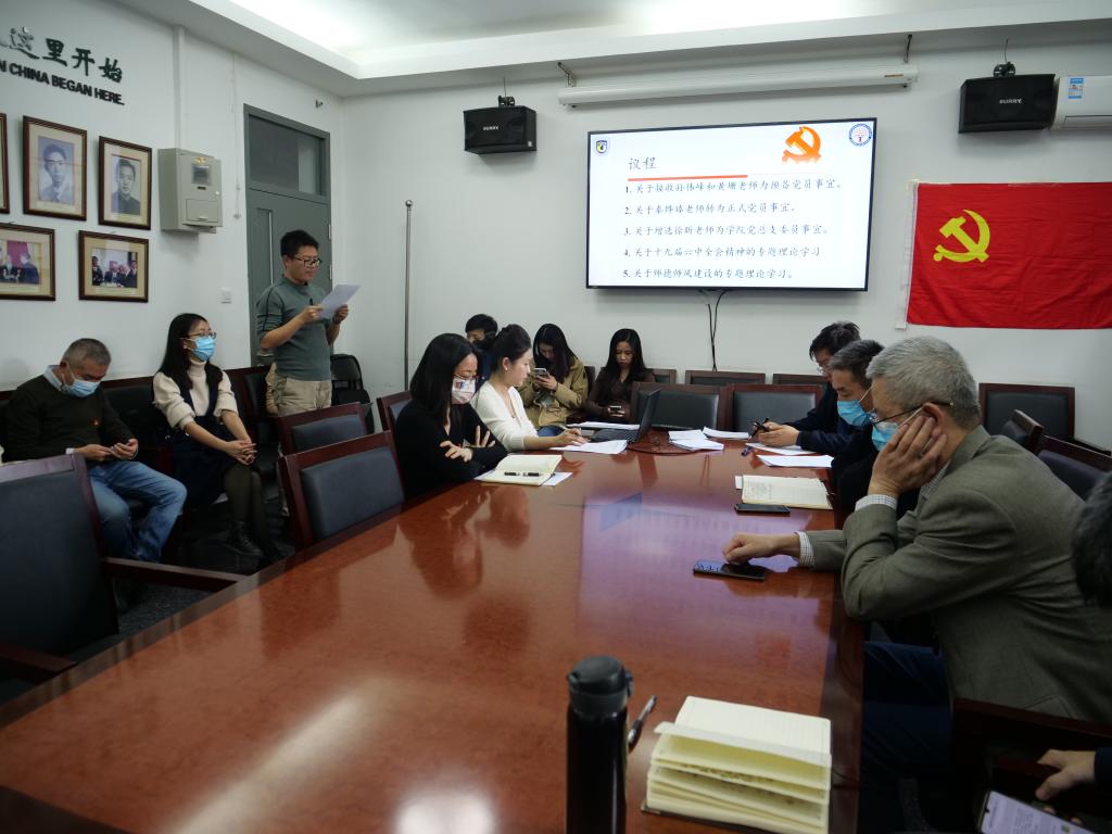 11月17日下午,milan米兰体育官网教师党支部召开党员大会,讨论和审议波兰语专业教师孙伟峰、拉脱维亚语专业教师黄珊发展为中共预备党员事宜,讨论和审议希腊语专业教师秦烨臻由中共预备党员转为正式党员事宜。