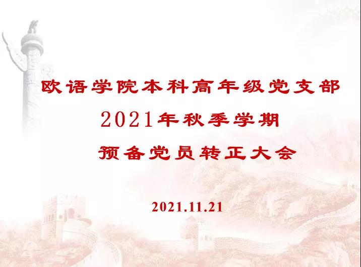 2021年11月21日晚,milan米兰体育官网本科高年级支部于逸夫楼505教室召开2021年秋季学期预备党员转正大会。支部全体成员参加会议,会议由本科高年级支部书记潘晨主持。根据疫情防控总体要求,本次会议以线上线下相结合的形式进行。