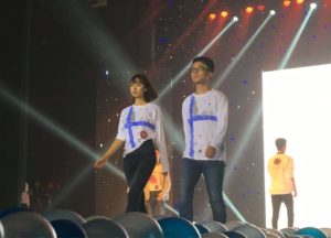 在班模展示环节,班模身着芬兰语班同学自行设计和绘制的班级T恤上台走秀,简洁而特色鲜明的班服设计、充满朝气和活力的班模展示,令人印象深刻。