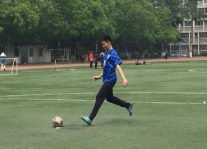 足球队的一次常规训练。这小公主般的射门动作是怎么回事??
