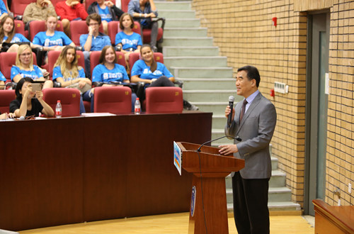 闫国华在致辞中对来自各孔子学院的中学生表示热烈欢迎,他表示,“你和我•在北京”北外夏令营是北外国际汉语推广工作的品牌项目,十一年来,它担负着让多国家、多民族之间的文化互相交融、彼此借鉴、相互学习的重要使命,让各国营员们在了解中国的同时,展示自己国家的特色,感悟文化交织的魅力。希望通过各种生动有趣的活动,营员们能够饱览名胜古迹、体验风土人情,广交青年好友、培养国际情怀。
