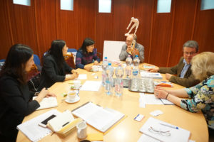 王芳书记、郭晓晶老师一行还拜访了中国驻匈牙利大使馆,同使馆政务参赞刘波进行会谈,并代表北外向使馆赠送“中华思想文化术语”系列图书。