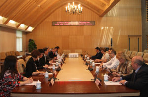 基里佐尤介绍了罗马尼亚竞争委员会的情况,他表示,在访问中央广播电视总台和中联部的时候就已经见到了很多北外校友,因此特意拜访对中罗友好交往做出突出贡献的北外,期待增进双方了解,建立交流合作。