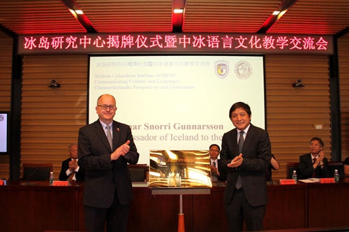 6月4日上午,教育部国别和区域研究备案中心milan米兰体育官网冰岛研究中心揭牌仪式在图书馆举行。校长彭龙,冰岛驻华大使古士贤,中国驻冰岛前大使王荣华、张卫东出席成立仪式,冰岛大学多语种教师代表团的20多位专家学者参加了开幕式和中冰语言文化教学研讨会。