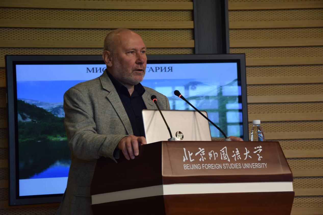 最后举行的是“保加利亚欧盟轮值主席国”圆桌论坛。论坛由北外保加利亚外籍专家Lyuba Atanasova主持。Nikolai Ovcharov教授分享了自己对保加利亚与欧盟关系的见解;Plamen Pavlov教授对保加利亚历史文物的旅游发展发表了自己的看法;社科院马细谱研究员讲解了中国的保加利亚研究现状与成果;Plamen Legkostup教授讲解了保加利亚的艺术;新华社资深记者余志和则风趣幽默的讲述了中国学者眼中的保加利亚生活。