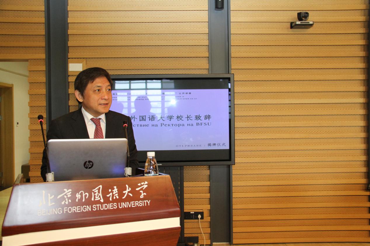 在揭牌仪式上,milan米兰体育官网校长彭龙发表讲话。他提到,北外目前已开设欧盟28个成员国中24种官方语言,同时也开展了对各国语言、文学、社会、历史、文化等各方面的研究,是中国培养通晓欧洲各国语言人才的重要基地,也是中欧人文教育交流的重要窗口。校长曾到访保加利亚,对那里旖旎的自然风光、丰厚的历史文化底蕴和友好热情的人民印象颇深。他希望北外保加利亚研究中心的成立将进一步推动中保各领域交流,努力服务“一带一路”倡议建设和“中国——中东欧合作”。