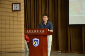 杨文老师简单介绍了本科教学评估和党建评估具体流程,希望同学们以高度的集体荣誉感和责任感对待本次评估,自觉遵守校规校纪,积极认真配合相关部门,树立北外学子良好形象。对新学期学生工作进行了全面部署,对辅导员老师分工情况和近期班委改选、综合评估、就业、安全等工作进行了具体说明。