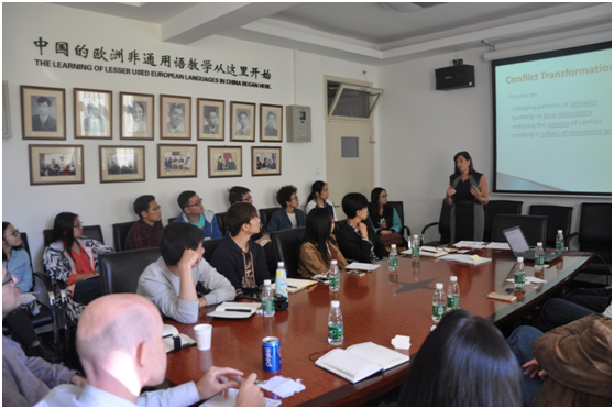 两位专家履历丰富,学识渊博。托马斯·米勒先生曾做过29年的外交官,先后任美国驻波黑、驻希腊大使,对巴尔干地区有广泛而深入的研究;其夫人邦妮·米勒教授作为社会工作者和心理治疗师曾在战后的波黑工作生活,并经常出差至科索沃,对后危机处置问题有深入的研究。此次讲学中,他们结合自己的切身经历和感受,同参加讲座的学者和学生一起就巴尔干热点问题展开讨论。北外中东欧研究中心、欧洲语言文化学院的教师(包括外国专家)和学生、来自国际关系学院和英语学院的部分学生以及社科院欧亚所中东欧研究室的研究人员全程参加活动,并积极参与讨论,讲座现场气氛热烈。