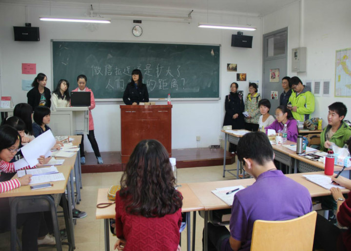 10月15日中午12:40,欧洲语言文化学院新生辩论赛在众人期待下正式拉开帷幕。此次比赛在主楼316进行,此场辩题为“微信拉近还是扩大了人们之间的距离”,由正方保加利亚语辩论队对阵反方罗马尼亚语辩论队强强对决。