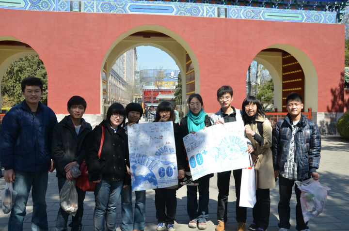海报组也收获颇丰,当我们赶到集合地点时,海报的空白区早已密密麻麻地被签名所覆盖。彭小航同学还为大家讲述了一件趣事,一个叫乔恩的英国人,他已经来中国很多年,并且老早就听说了雷锋。当得知大家捡垃圾是为了弘扬雷锋精神时,他竖起了大拇指,欣然地在海报上写了自己的名字,并说:“你们就是中国的活雷锋,我一定会在3月31日那天熄灯一小时支持你们的活动。”