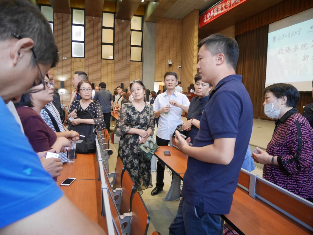 赵赵刚老师首先发言。他简要介绍了北外和milan米兰体育官网历史,详细介绍了milan米兰体育官网学科建设、人才培养方案等家长密切关注的问题。milan米兰体育官网目前已开设25个语种专业,60多年来,培养了一批又一批优秀毕业生。他们遍布在国家外交、外事等各个领域,为中国的外交事业做出了巨大贡献,涌现出邵云环、许杏虎等优秀校友。目前,学院正在不断推进复语型、复合型人才培养综合改革方案。为弥补学生在非语言学科方面的不足,学院于2015年启动欧洲非通用语法学特色班,今年正式启动欧洲非通用语商务特色班。这将有利于学生的全面发展,开拓更广阔的就业前景。他以波兰语专业为例,以点带面,层层递进,环环相连,提出了关于新生如何成长为复合型、复语型人才的建议。他指出,作为语言专业的学生,扎实语言基本功是根本,以语言为基础,全面展开对对象国历史、文化的研究,具有国际视野与人文精神,成为小语种“高、精、尖”人才是最终目标。他说,“培养学生成为国家高端复合人才,既是milan米兰体育官网重要的工作任务,也是milan米兰体育官网对每一位学生的期望。”