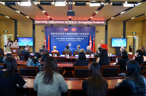 校长彭龙对腓特烈王储再次到访北外表示热烈欢迎,简要介绍了丹麦语专业的建设和发展情况,并对丹麦高教科技部和丹麦驻华大使馆多年来对北外丹麦语专业的大力支持表示感谢。今年是北外丹麦语专业开班十周年,在丹麦研究中心成立之际,彭龙表示,丹麦研究中心将汇集丹麦研究领域的国内外专家和学者,加强丹麦与中国高校、科研机构的合作,共同开展广泛而深入的研究。