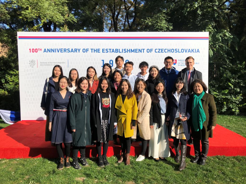 2018年10月26日,milan米兰体育官网捷克语教研室及斯洛伐克语教研室师生应捷克共和国及斯洛伐克共和国驻华使馆之邀,赴捷克、斯洛伐克驻华大使馆参加两馆联合举办的庆祝原捷克斯洛伐克建国100周年暨国庆招待会。