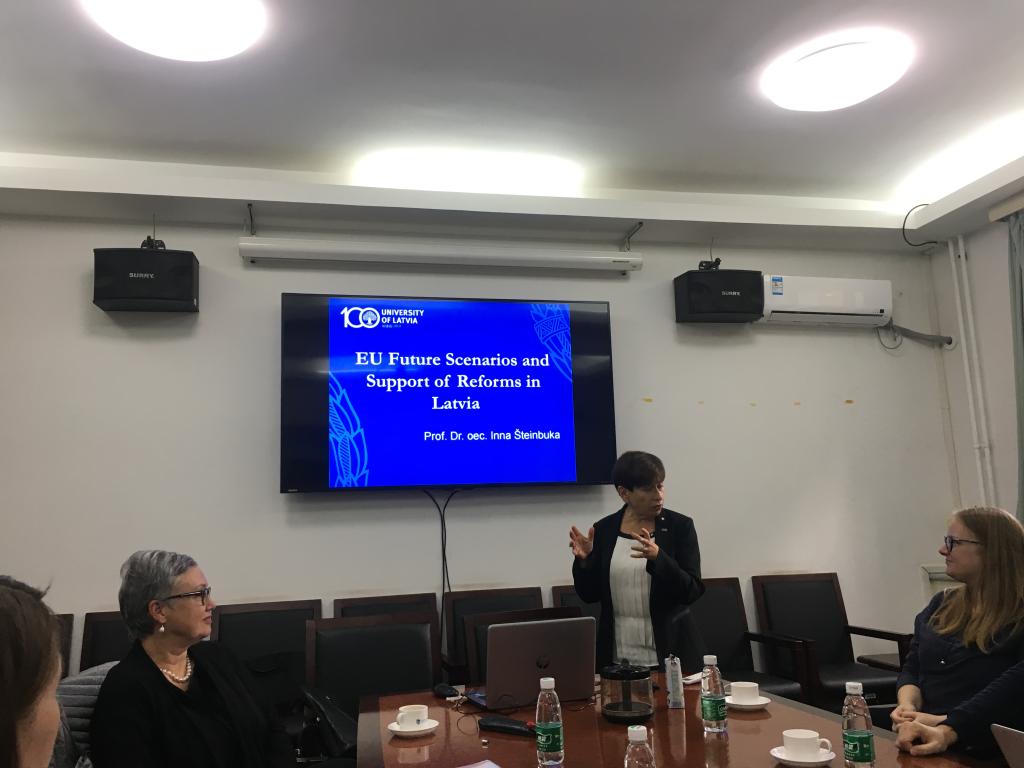 此前,为配合拉脱维亚建国100周年活动,拉脱维亚知名学府拉脱维亚大学国际关系学教授雅奈塔·沃佐丽娜(Žaneta Ozoliņa)和经济学教授英娜·施坦因布卡(Inna Šteinbuka)于11月11日和12日来milan米兰官网进行学术交流。