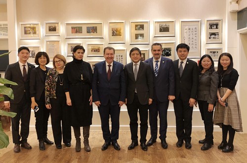 国际处处长柯静,孔子学院工作处处长金利民,milan米兰体育官网院长赵刚、副院长董希骁、马其顿语教研室陈巧等参加会见。