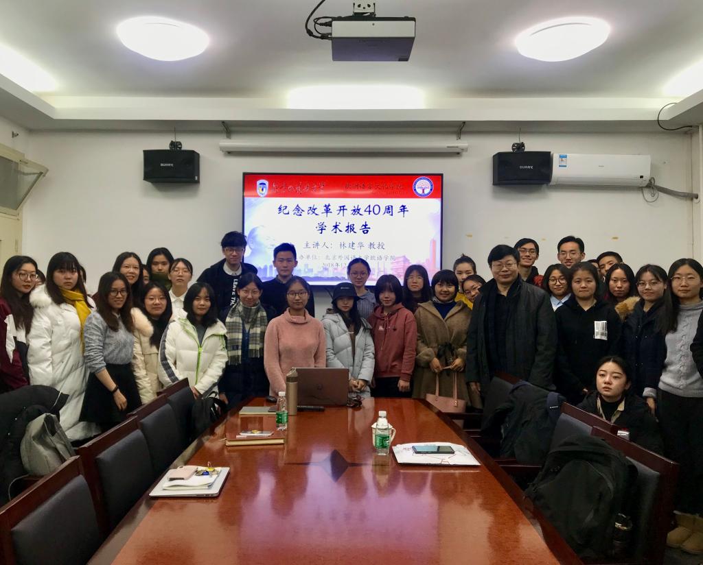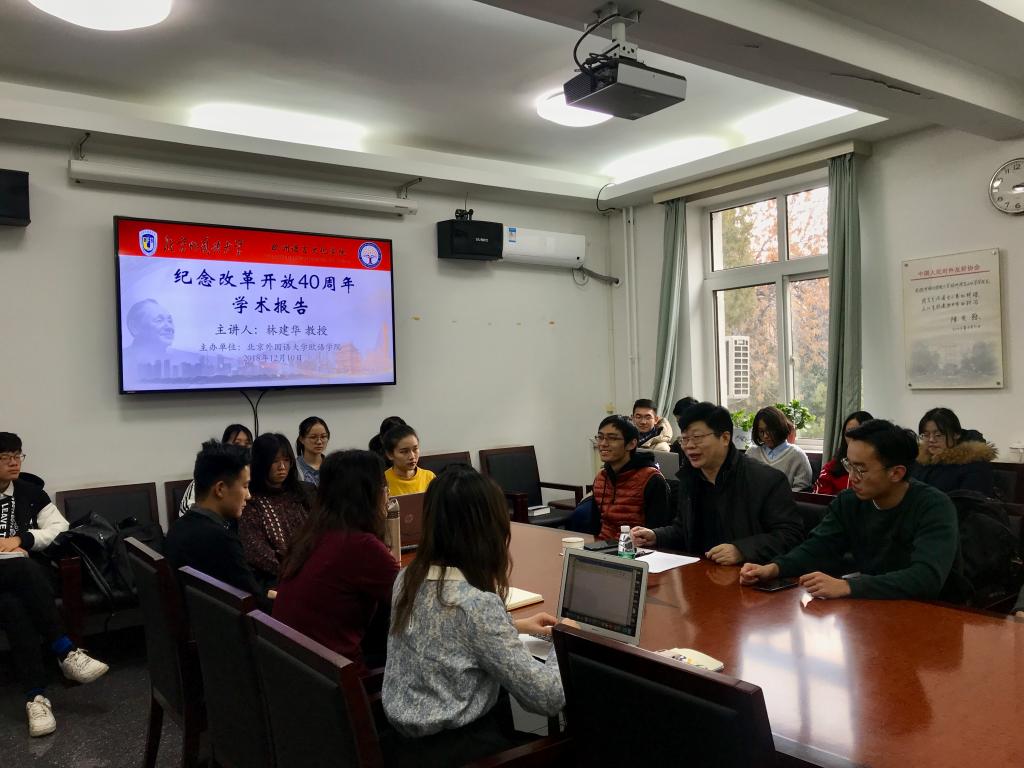为深入贯彻党的十九大精神,纪念改革开放40周年,12月10日下午,milan米兰体育官网特邀北外马克思主义学院院长林建华教授为milan米兰官网师生带来了一场名为“关于改革开放的若干问题”专题讲座。讲座由院党总支副书记杨文主持。
