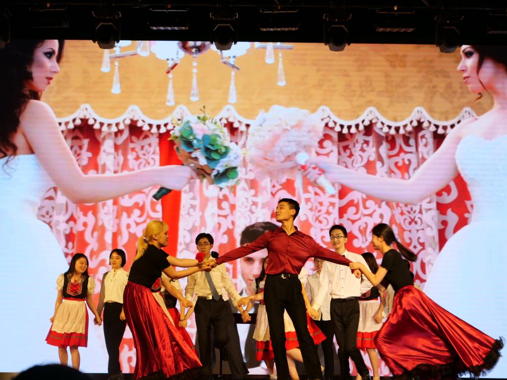 大赛在阿尔巴尼亚语班带来的《十四岁新郎》中拉开序幕。该剧是阿尔巴尼亚著名喜剧大师安东·恰佑比的经典剧目之一,情节滑稽可笑又令人心酸。阿尔巴尼亚语同学采用了反串的表演形式,在短短的表演中让人物形象立体丰满起来,引得阵阵笑声与掌声。
