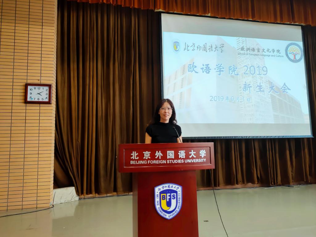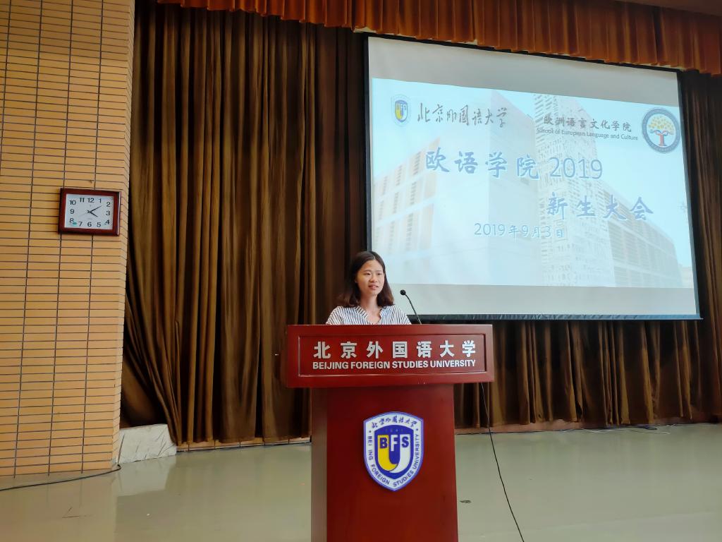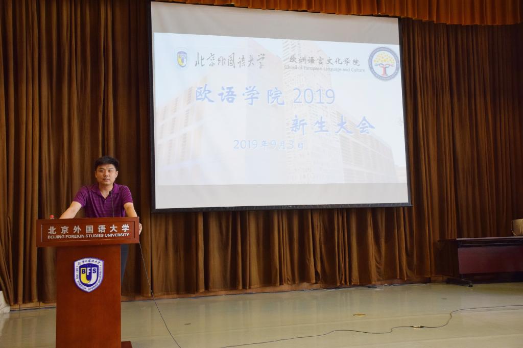 杨文老师热烈欢迎2019级新同学加入milan米兰体育官网大家庭。对milan米兰体育官网的发展历程、教学理念和优秀的校友代表进行了简要介绍。杨老师强调了大学自主学习,无人监督的学习特点,提醒同学们大一学习至关重要,要打好语言基础。而在独立自由,丰富多彩的大学生活中要合理选择社团,均衡自己的学习生活。自由是相对的,要严格遵守校规校纪。