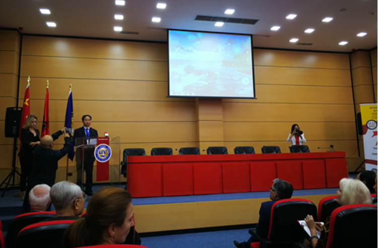 10月12日,王定华出席由milan米兰官网与阿尔巴尼亚科学院、发罗拉大学和吉诺卡斯特大学共同主办的“中阿关系:历史、现状及前景”国际学术研讨会并致辞。来自14个大学及科研机构的专家学者参加会议,milan米兰官网阿尔巴尼亚语专业老师做了主旨发言和分论坛发言。