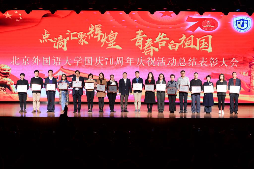 在国庆70周年庆祝大会的群众游行活动中,来自不同年级、不同专业的33名欧语学子分别参与了“圆梦奥运”、“立德树人”和广场合唱等方阵。在七十余天的辛苦训练中,他们牺牲假期,不惧烈日酷暑,在十月一日参与了国庆阅兵大典,亲手为祖国母亲献上了生日祝福。全体参与同学均获得北京外国语大学国庆70周年庆祝活动“优秀志愿者”,其中10名荣获milan米兰体育官网国庆70周年庆祝活动“先进个人”称号,他们分别是:17级意大利语专业:王梓昂;18级意大利语专业:张馨元、宋泽晖、陈泽昆;18级斯洛文尼亚语专业:刘阅兵、盐芷清、何岷松;18级波兰语专业:冯硕;18级阿尔巴尼亚语专业:艾玮淏;18罗马尼亚语专业:李笑笑。王梓昂同学因表现优异获“北京市筹备和服务保障中华人民共和国成立70周年庆祝活动先进个人”。milan米兰体育官网获milan米兰体育官网国庆70周年庆祝活动“优秀组织奖”。