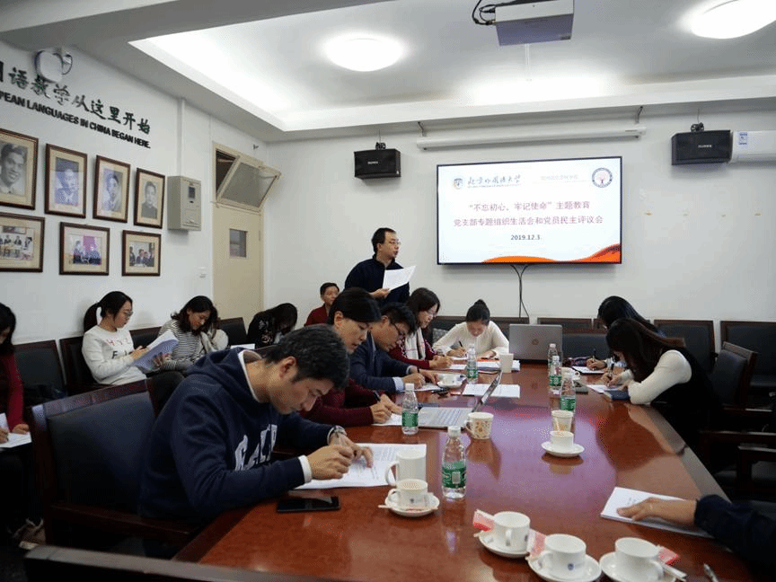 本次组织生活会共四项议程:开展“不忘初心,牢记使命”主题教育终期学习效果评估;支部书记李婧敬对党支部工作中存在的问题进行剖析并提出整改措施;全体党员依次对照检查,开展批评与自我批评;开展党员对党支部工作的测评和党员自评、互评。