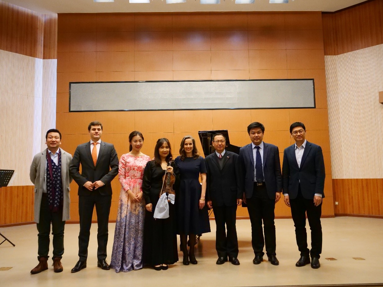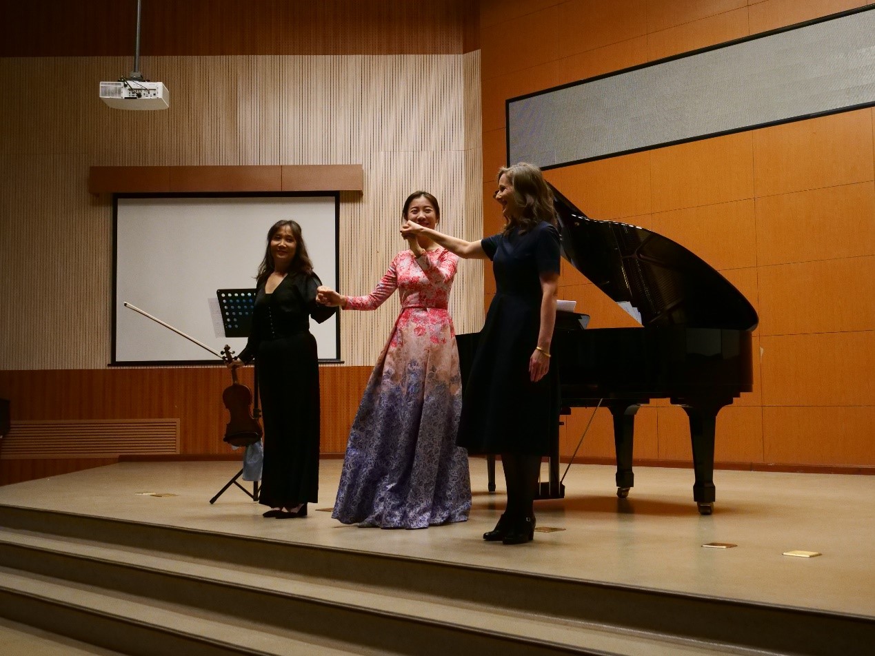 悠扬的小提琴、伴着清朗的钢琴声,还有女高音震撼的嗓音,在大厅里回旋飘荡,直击人心。欧洲语言文化学院院长在演唱会前致辞中说的:音乐是人类共同的语言。我们学习欧洲的语言文化,践行着文化交流。而音乐作为民族文化的一个重要组成部分,是人文交流的途径和陶冶情操的方法。