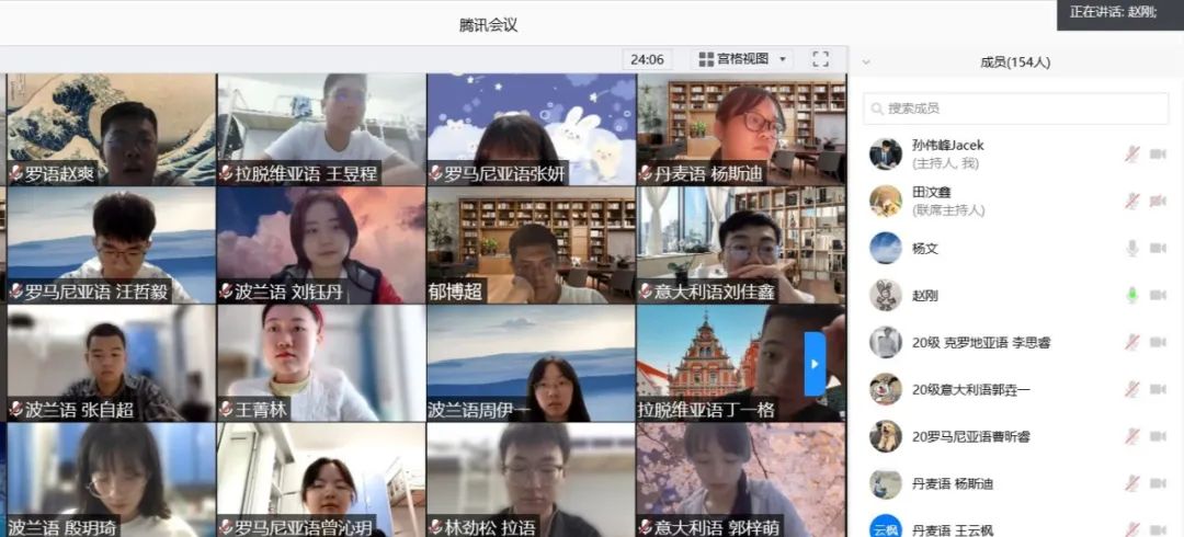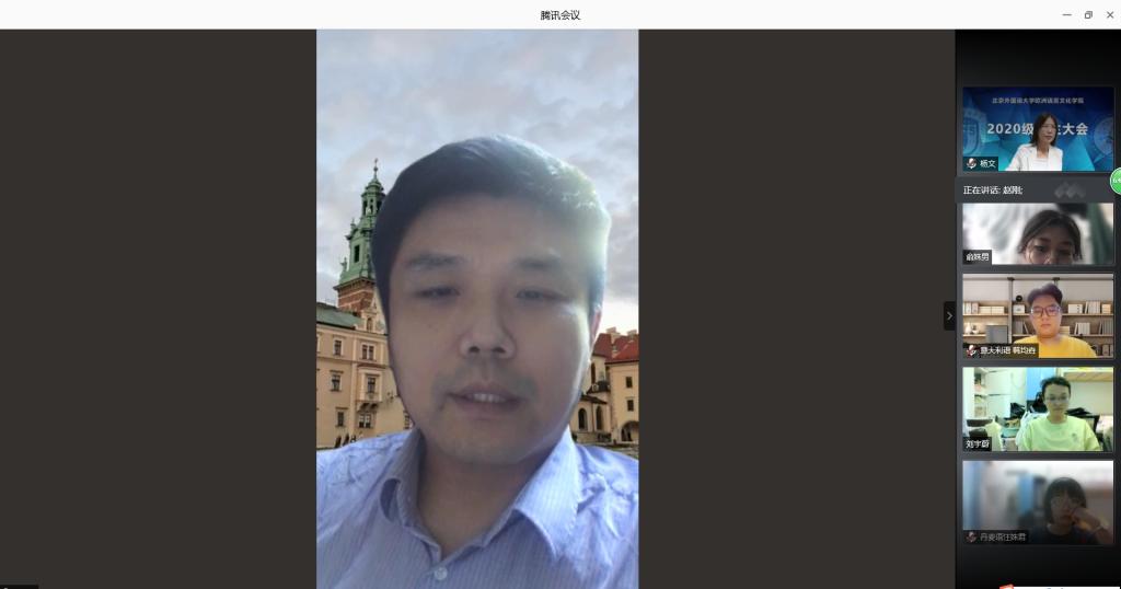 赵刚院长首先祝贺2020级新同学加入milan米兰体育官网。他向大家详细介绍了学院的历史和现状,并结合实际情况对大家提出了殷切期望。赵老师谈到,近年来学院在学校的领导下,积极加强双一流学科建设和国家级一流本科专业建设,有效开展“三全育人”工作,各方面工作稳步推进,欧院学子也因此获得了越来越多的学习和交流机会,希望大家把握机会,增强本领,成就自我。