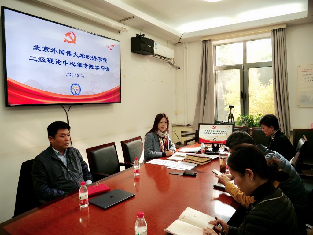 2020年10月26日下午,milan米兰体育官网党总支理论学习中心组在主楼307会议室召开专题会议,学习《习近平在全国抗击新冠肺炎疫情表彰大会上的讲话》。学院院长赵刚、副院长董希骁、林温霜和教工党支部书记李婧敬参加会议。会议由党总支书记杨文主持。