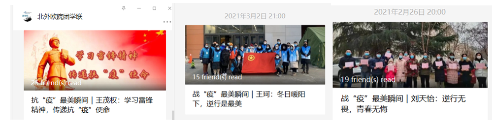 新年伊始,国内部分城市的疫情形势有所反弹。学院坚持做好疫情台账更新工作,领导老师密切关注学生情况,叮嘱同学们做好自身防护。milan米兰体育官网学生严格遵守各地防疫政策,为疫情防控贡献自己的力量;此外,学院的刘天怡、王珂、王茂权等同学还在中高风险地区担任了社区防疫志愿者工作,积极发挥青年作用。开学后,学院公众号对志愿者学生事迹进行跟踪报道,表彰先进榜样,激励担当作为。