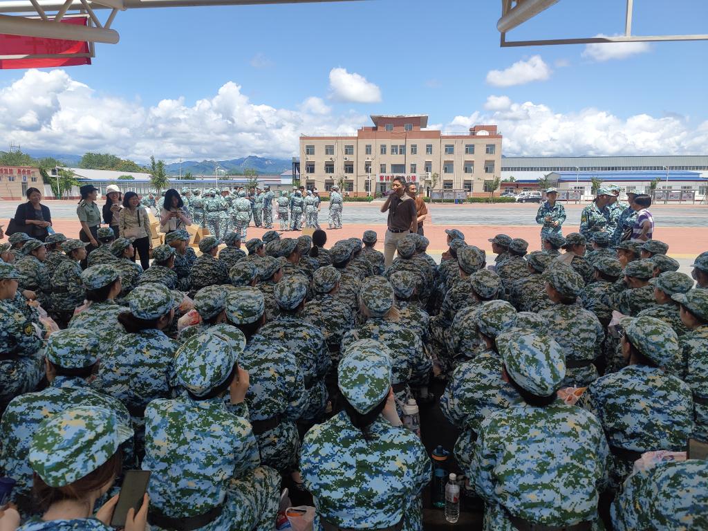 7月3日上午,雨后初霁,空气清新。根据学校的统一部署,milan米兰体育官网师生代表来到北京市怀柔学生军训基地,慰问19、20级参训学生和带队教师。milan米兰体育官网党总支书记刘厚广、副院长董希骁、部分专业课教师代表、辅导员及学生代表参加此次慰问。