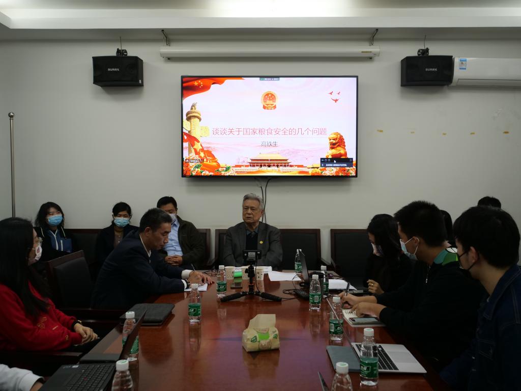 高铁生教授从粮食安全的重要性、粮食安全目标、安全战略密码、中国粮食安全与世界粮食安全的关系四个方面展开。他回忆早期的求学和工作经历,讲述与粮食工作结下的不解之缘,真挚表达“心怀国之大者,为国家粮食安全做些贡献,此生足矣”。