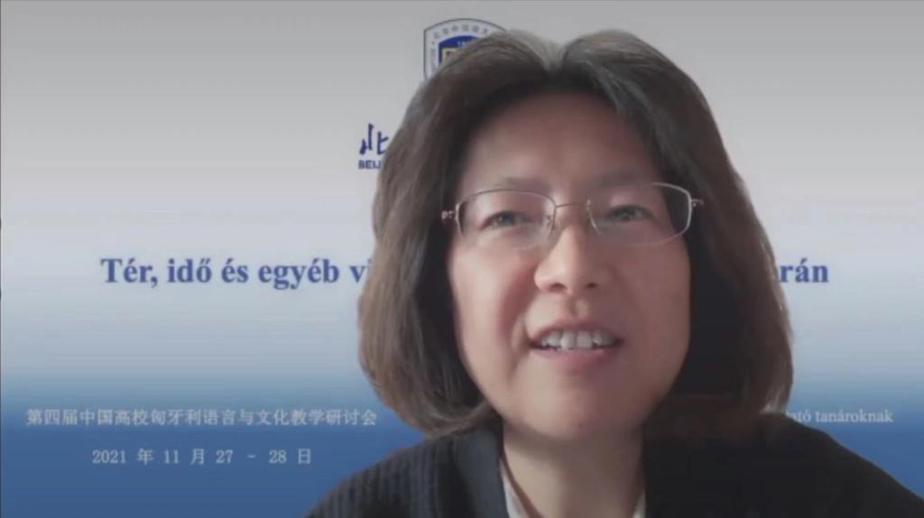 匈牙利研究中心主任、北外欧洲语言文化学院匈牙利语教研室主任许衍艺副教授向来宾致欢迎辞。许衍艺感谢李斯特中心—北京匈牙利文化中心宋妮雅参赞对中国高校匈牙利语教学研讨会及北外匈语专业的支持。她表示,疫情对我们的日常教学、学生的交换计划都产生了一定的影响,但教师们能够积极克服教学计划的调整、教学材料的短缺等带来的不利影响,保障良好的教学效果。许衍艺回顾了去年研讨会的讲座内容,并简要介绍了今年研讨会的主题。她希望各位参会老师能够充分利用这次研讨会的机会,将讲座内容与自己的教学经验结合起来,同时,她也希望未来能有更多高校的教师在研讨会上分享教学经验、探讨教学改革问题。