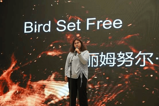 接下来是由伊丽姆努尔·奥斯曼带来的独唱《Bird Set Free》。一袭蓝衣,嗓音低沉有力,歌声激情澎湃。“如同划破天际的鸟儿,铿锵作响”,从低吟到高歌,迸发出生命的激情!