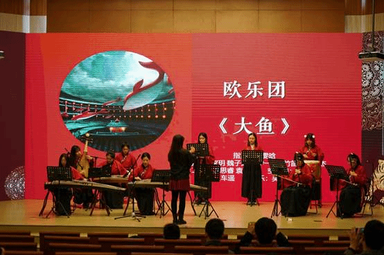 压轴出场的是由欧乐团带来的传统乐曲演奏《大鱼》。红装华服,器乐齐鸣。摇铃清脆、琵琶清亮。错落有致的中国鼓和空灵鼓,婉转悠扬的笛子和二胡,若余音绕梁,似浅斟低唱。空灵的雅乐,向世人缓缓道出大鱼海棠的故事。品咂此乐,若人间至味,最是清欢。