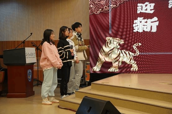 表演形式多种多样,游戏环节也不能缺席。接下来是以冬奥会为主题的小游戏。拼音猜词、你画我猜。冬奥会奖牌叫什么,火炬的名称是什么、冬奥会的举办地在哪里……主持人风趣幽默,观众也乐的前仰后合。不仅如此,还达到了寓教于乐的目的。热闹的小游戏后的冬奥海报颁奖,展示了一幅幅精美的设计海报,体现出同学们喜迎冬奥的精气神!