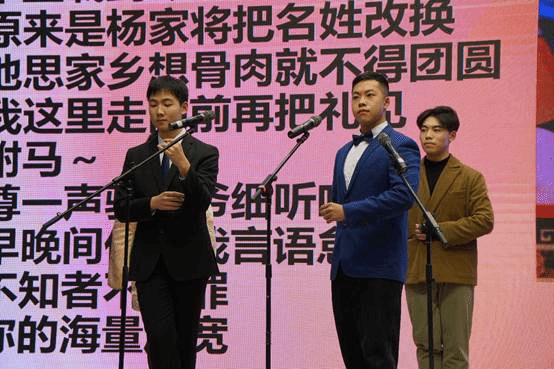 说学逗唱,你来我往。这分明是郭虹泽和王鸿硕为我们带来的相声《学外语》。两身蓝袍,搁那一立,一个个包袱,娓娓道来,可见他们扎实的基本功。接地气的热梗,引发观众共鸣,可谓是笑声不断、喝彩连连。
