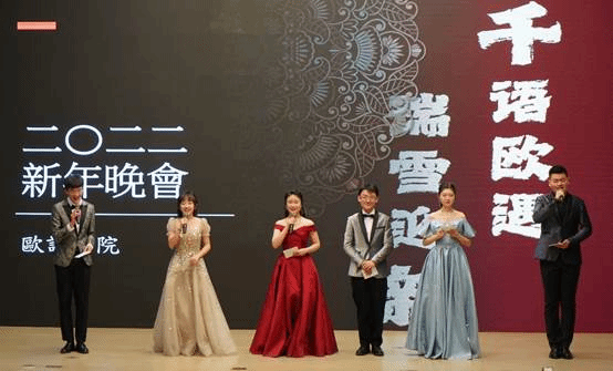 12月15日晚八时三十分许,欧院新年晚会——“千语欧遇 瑞雪迎新”拉开了大幕。阿语楼国会厅内座无虚席,参演成员都盛装以待。每个人都怀揣着对过去充实一年的感慨和对2022年的憧憬,在一片欢声笑语中迎接晚会的到来。
