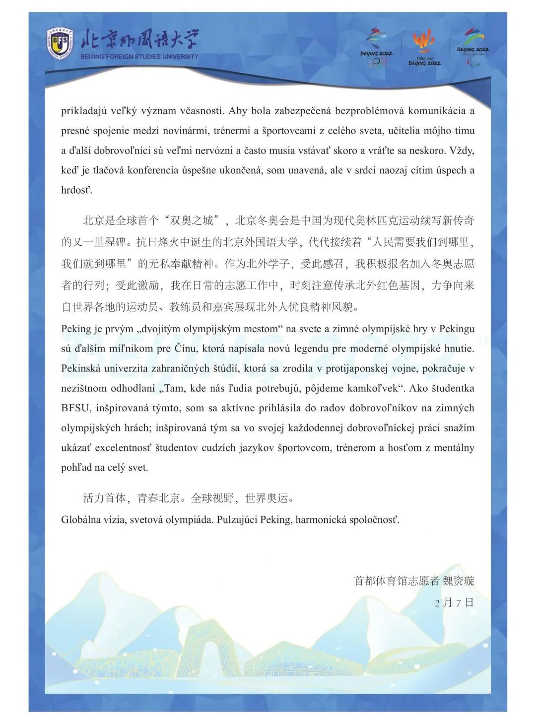 欧语人在冬奥 | 首都体育馆志愿者魏资璇: 活力北京 世界奥运