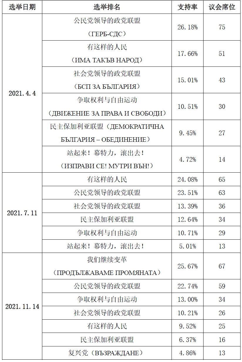 2021年,在中东欧国家的政治局势普遍发生改变的背景下,保加利亚的议会选举充满波折,连续举行了三次议会选举才最终成立了新一届政府。