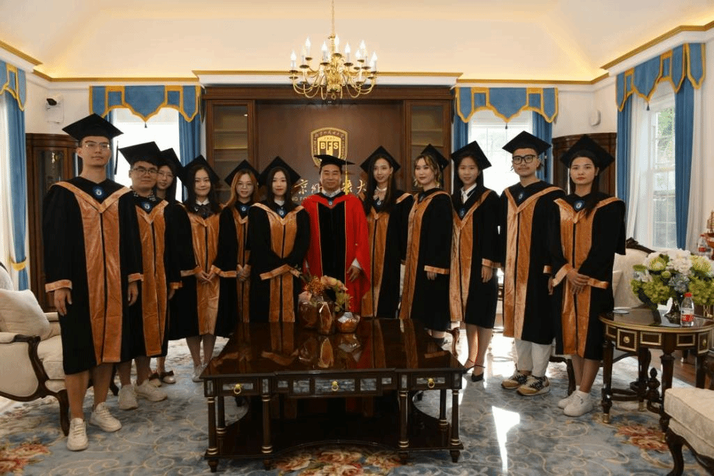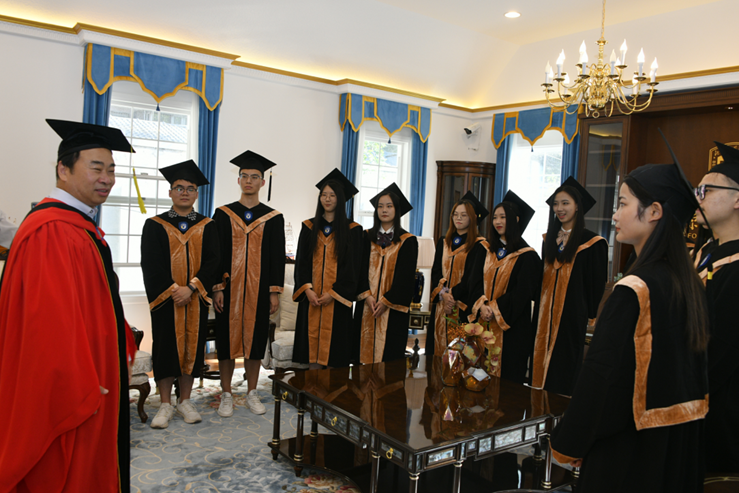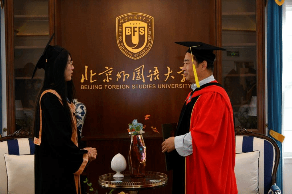 6月2日下午,德洋楼前惠风和畅,阳光明媚,会客厅里充满了喜气洋洋的气氛。17时许,党委书记王定华身着红色导师服,邀请欧洲语言文化学院拉丁语专业首批应届本科毕业生来到德洋楼,和同学们亲切会面,与大家合影留念。