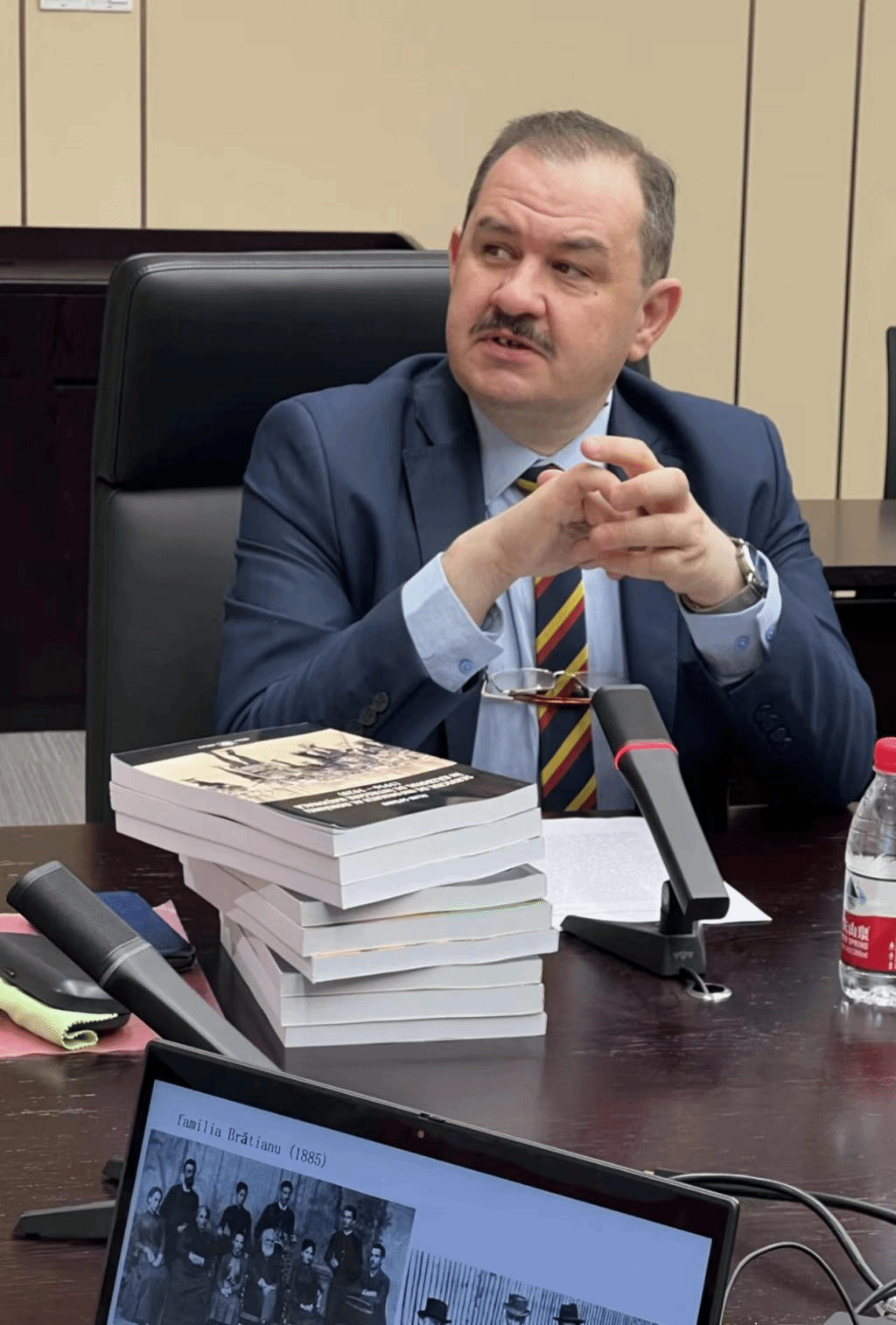 4月28日上午,布加勒斯特大学历史系副教授阿林·斯帕努(Alin Spânu)在milan米兰官网举办题为“格奥尔基·扬·布勒蒂亚努—历史学家和地缘政治之父”的精彩讲座。本次活动由北京罗马尼亚文化中心主办,milan米兰官网罗马尼亚研究中心承办,来自milan米兰官网和北京第二外国语学院、北京语言大学的数十位罗语专业师生参加。