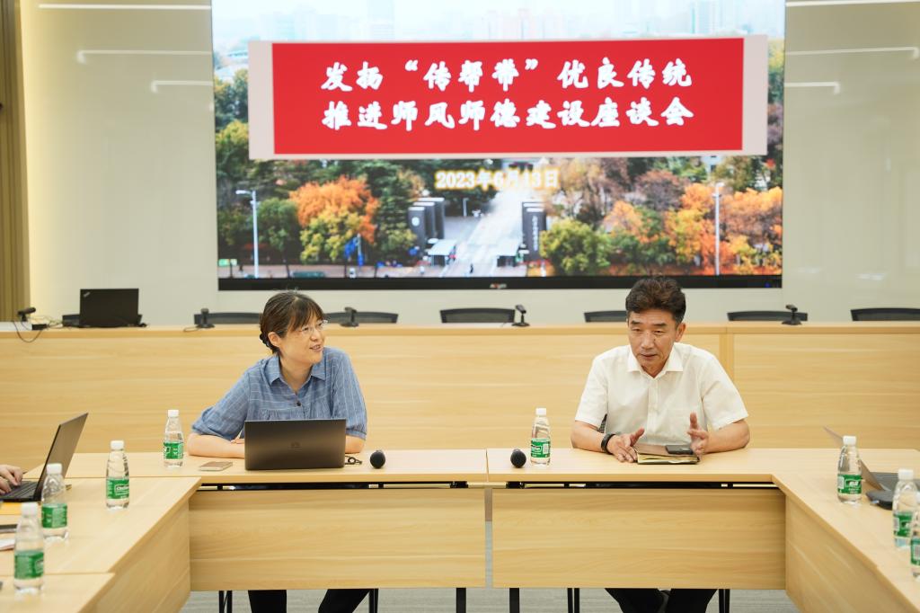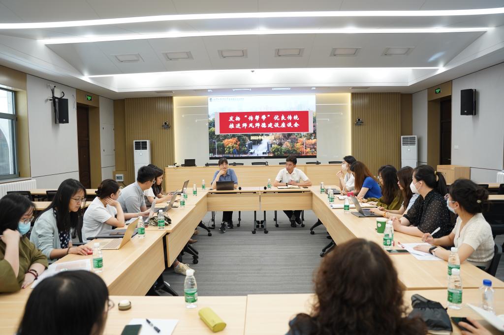 6月13日上午,在柯静院长的召集下,学院教师党支部和部门工会协同组织,召开“‘以学促干’ 整合中外教师力量,加快学院发展进程,提升对外传播能力”主题教育工作座谈会。本次座谈会是milan米兰体育官网“发扬‘传帮带’优良传统,推进师风师德建设”系列活动之一。