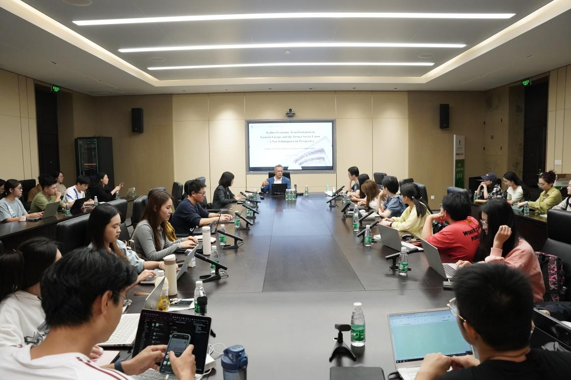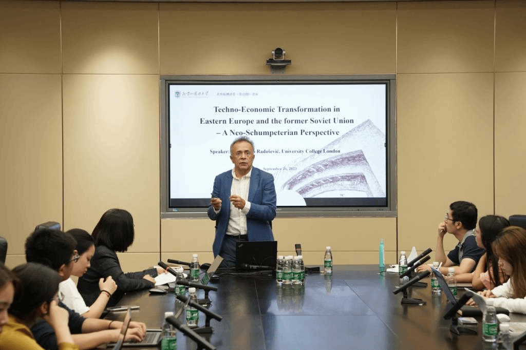 9月26日,欧洲语言文化学院邀请英国伦敦大学学院斯拉夫东欧研究院教授斯拉沃·拉多舍维奇教授作题为《从新熊彼特主义视角看东欧和前苏联的经济—技术转型》的讲座。讲座由欧洲语言文化学院院长柯静教授主持。