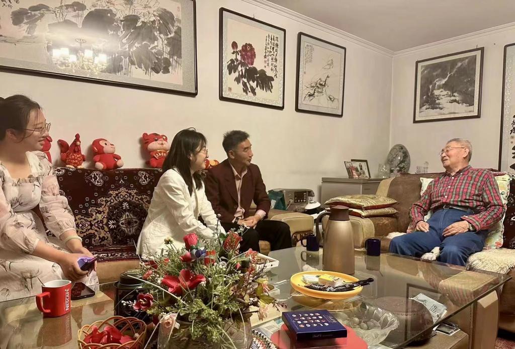 刘厚广代表学院向张老师赠送《欧洲语言文化研究》等学术科研成果,同学们精选照片制作了音乐相册赠予张老师,以此表达对老先生的敬仰和感恩之情。刘飞、张一冉、张湉歌参加看望活动。