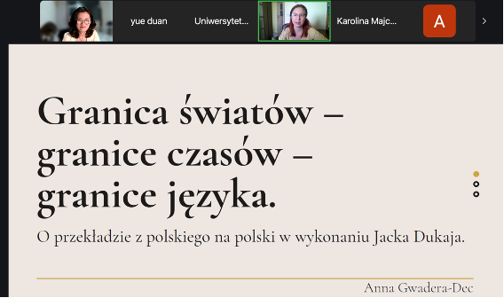 2024年5月14日下午,北外波兰研究中心参加由西里西亚大学主办的“边界——文明、文化、语言”第十二届国际研究生学术论坛。本届论坛被纳入卡托维兹2024欧洲科学城系列活动中。硕士研究生谢楚越、马子涵、夏张洋和邹新宇在会议中发言,交流自身研究成果。